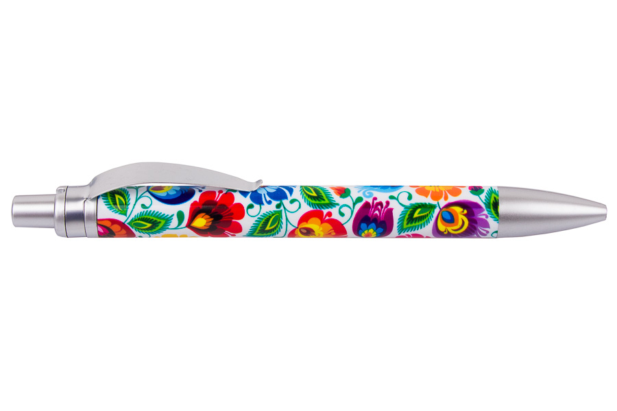 Guličkové pero so stláčacím mechanizmom, so štýlovou ľudovou potlačou.