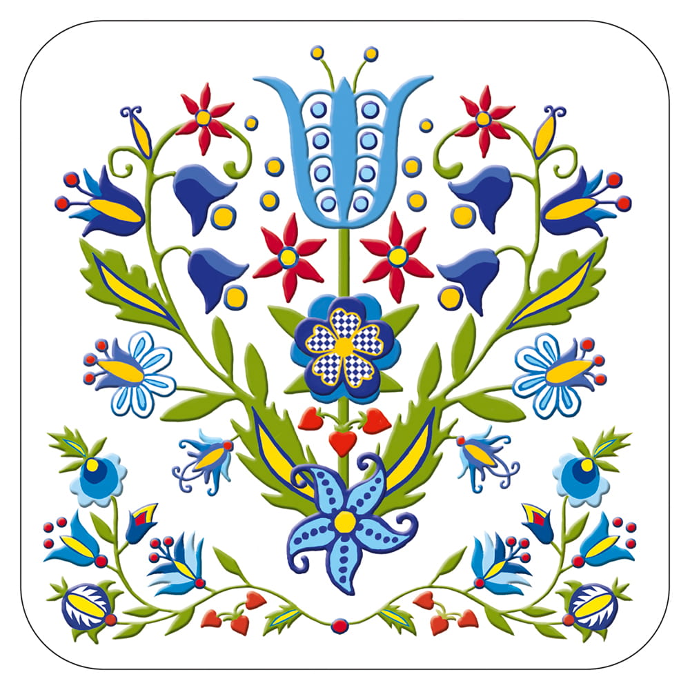 Žiarivé farby, ktoré vydržia: Povrch podložky je potiahnutý špeciálnou lesklou fóliou, ktorá nielen chráni ľudový vzor, ale dodáva mu hĺbku a lesk, vďaka čomu farby doslova ožívajú.