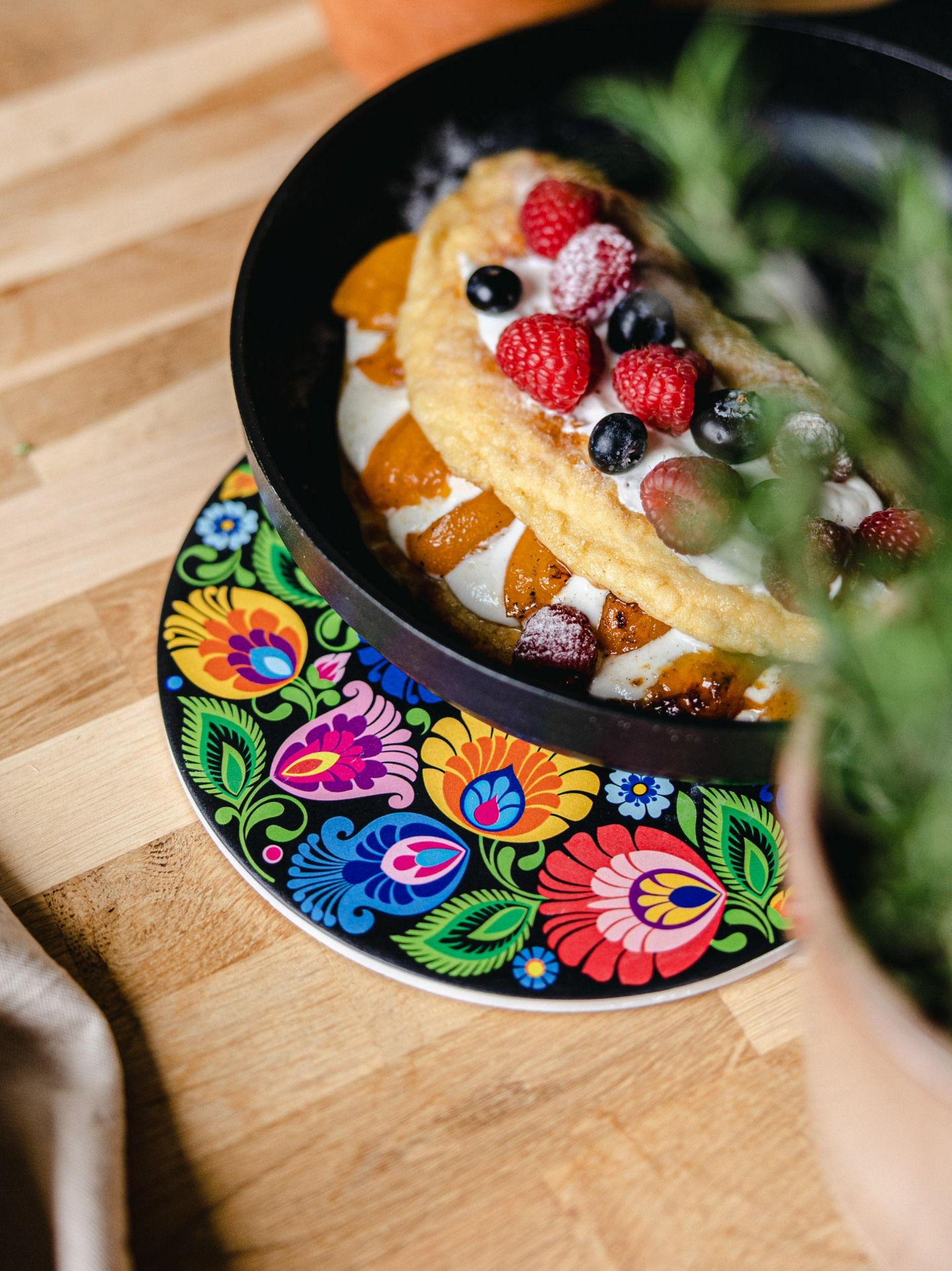 Chráňte svoj stôl, obrus či kuchynskú linku s eleganciou, ktorá nestarne. Táto pevná keramická podložka s nádherným folklórnym vzorom je nepostrádateľným pomocníkom pri servírovaní horúcich polievok, hlavných jedál či čerstvo upečených dobrôt priamo z rúry.