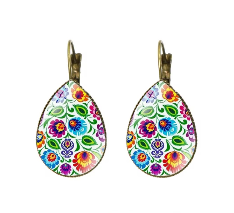 Náušnice v tvare slzičiek - medené - kvety na bielom pozadí 1Skladom2,90 €