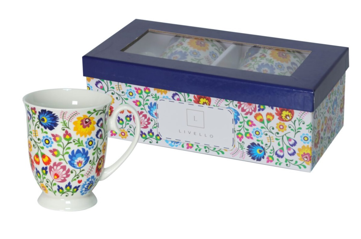 Darčeková sada dvoch hrnčekov 350ml- kvety na bielom pozadí