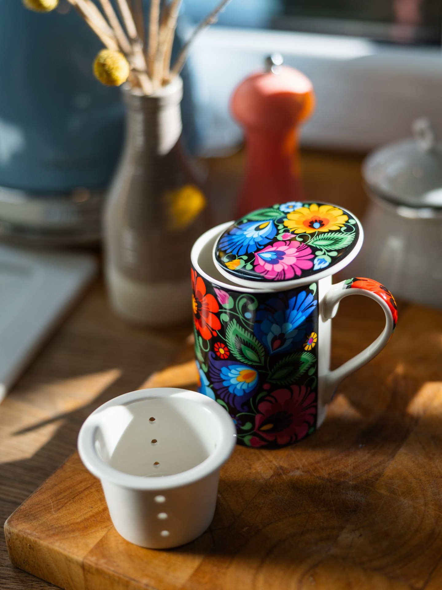 Hrnček 280 ml na sypaný čaj s keramickým sitkom