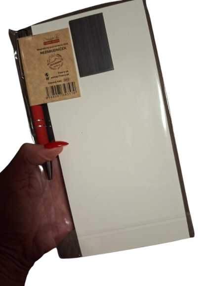 Na tvrdom kartónovom podklade nájdete upevnený trhací linkovaný blok, na ktorý môžete rýchlo napísať, čokoľvek čo Vám napadne. Zo zadnej strany je magnet pre upevnenie na chladničku.
