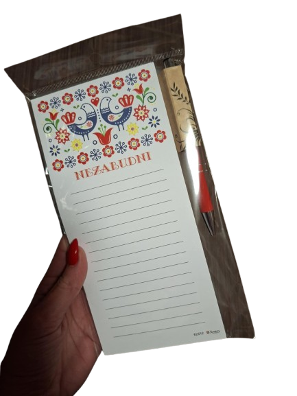Na tvrdom kartónovom podklade nájdete upevnený trhací linkovaný blok, na ktorý môžete rýchlo napísať, čokoľvek čo Vám napadne. Zo zadnej strany je magnet pre upevnenie na chladničku.
