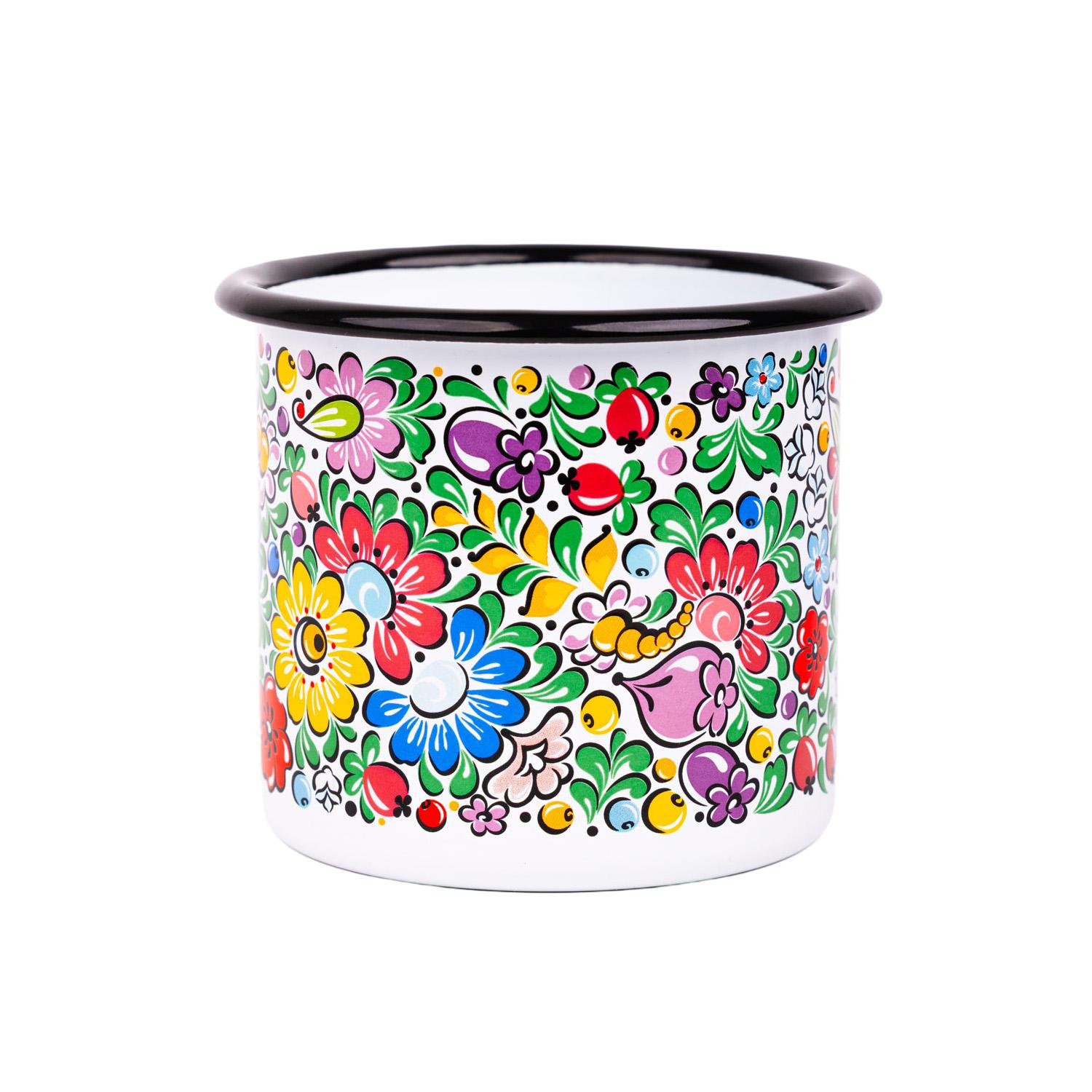 Smaltovaný hrnček 500ml - kvetovaný