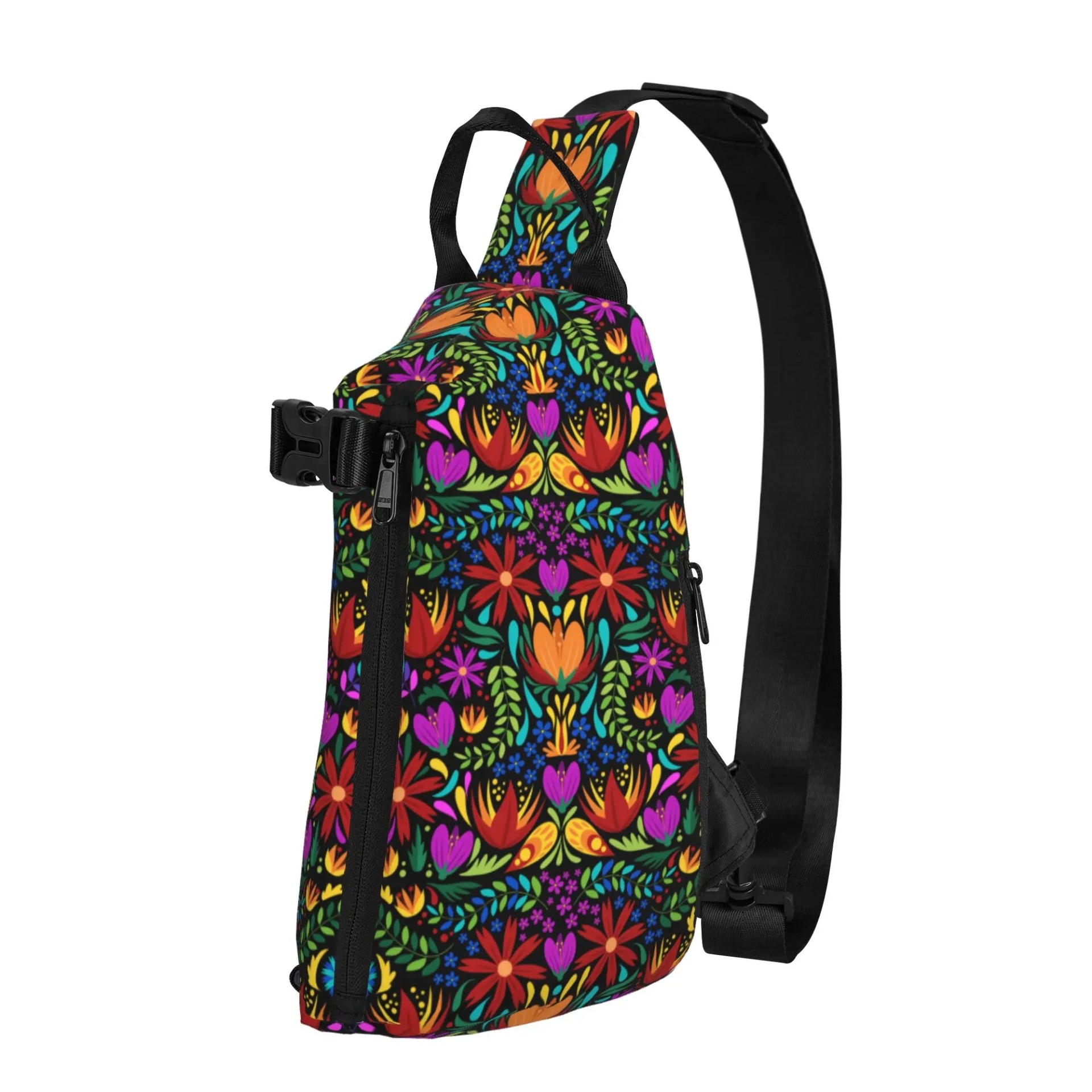 - Ruksak SLIM s vertikálnym zipsom- kvety na čiernom pozadí