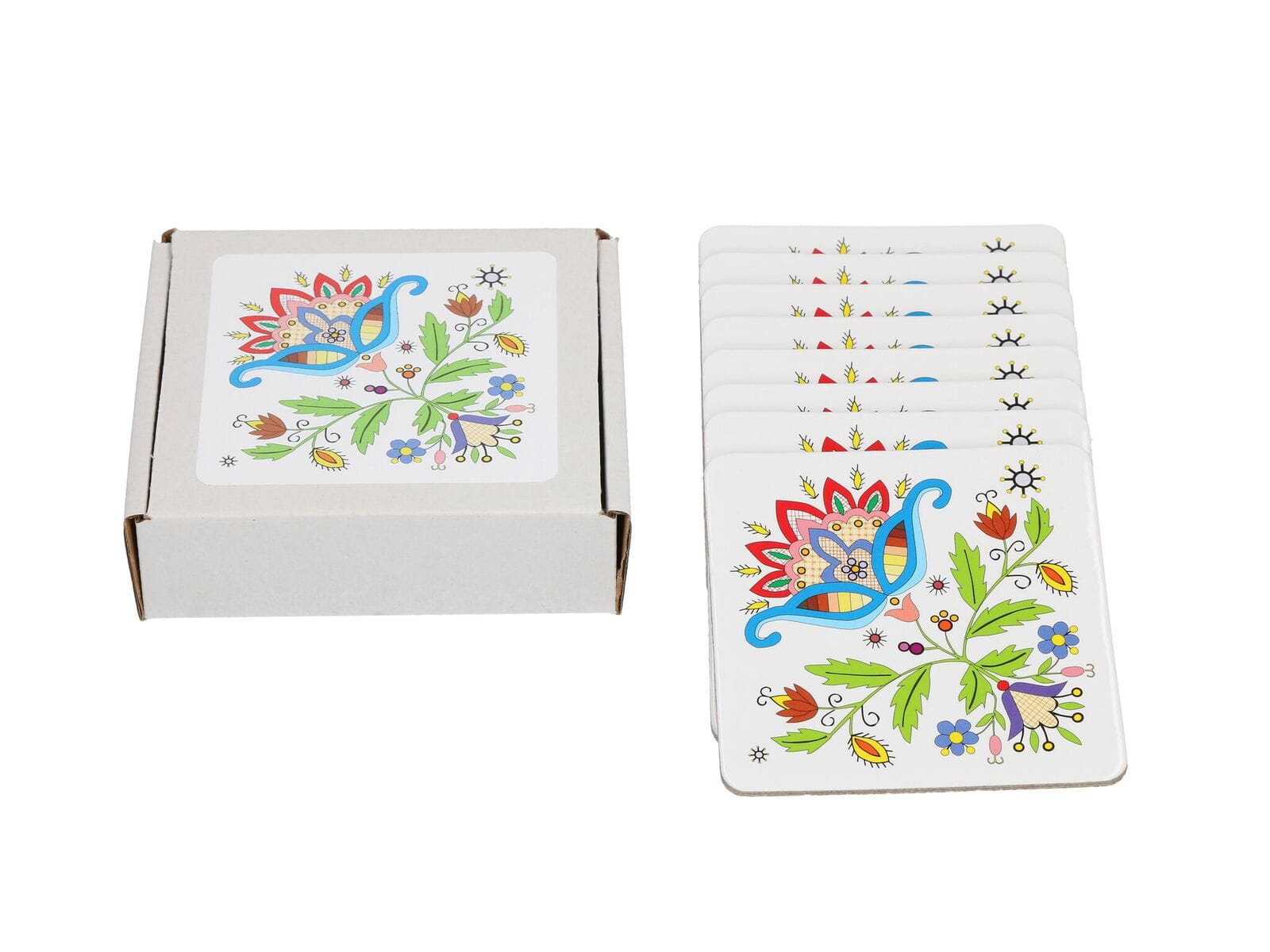 Sada 8 korkových podložiek pod poháre s ľudovým motívom