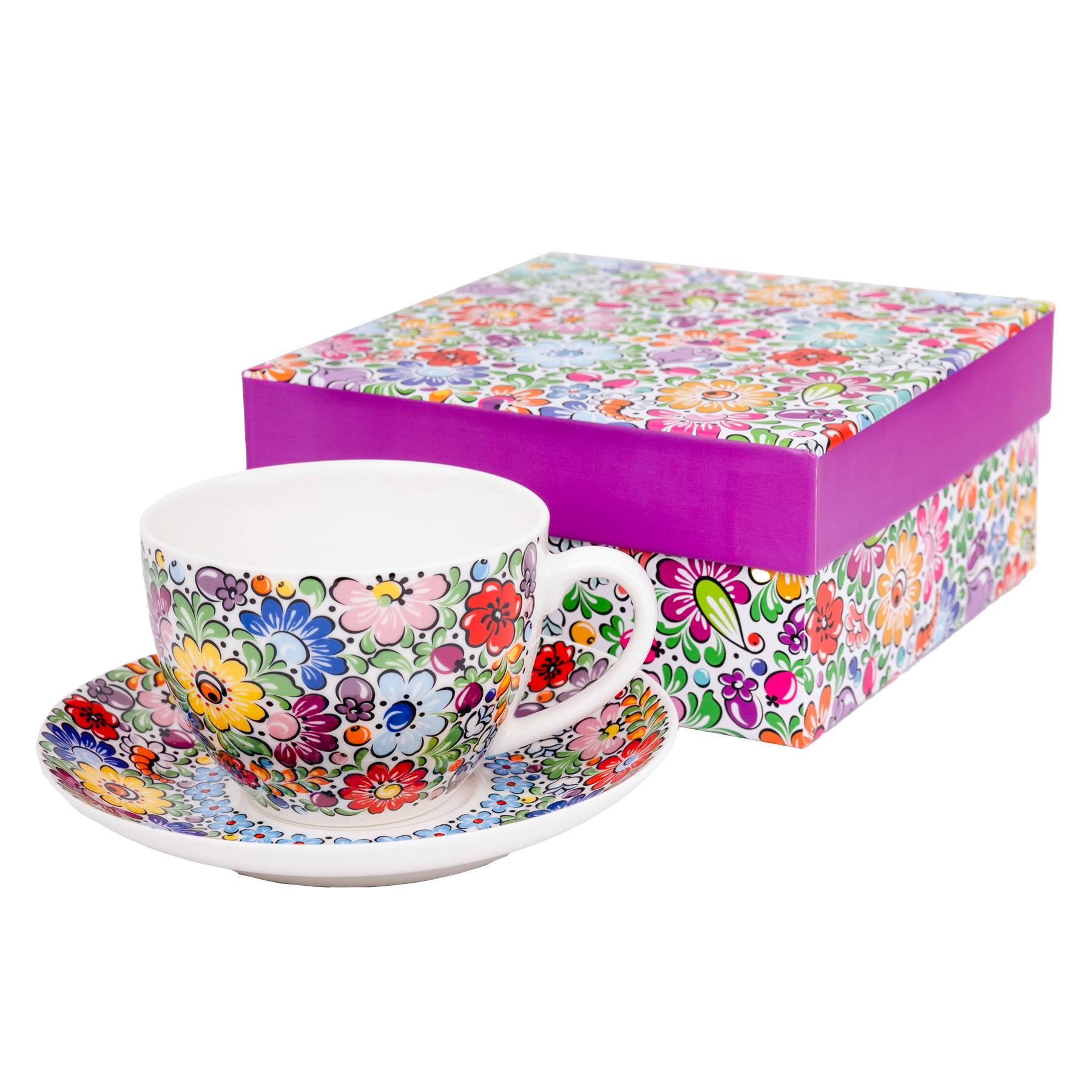 Porcelánová šálka s podšálkou a ľudovým motívom – Folklórny rituál v každom dúšku