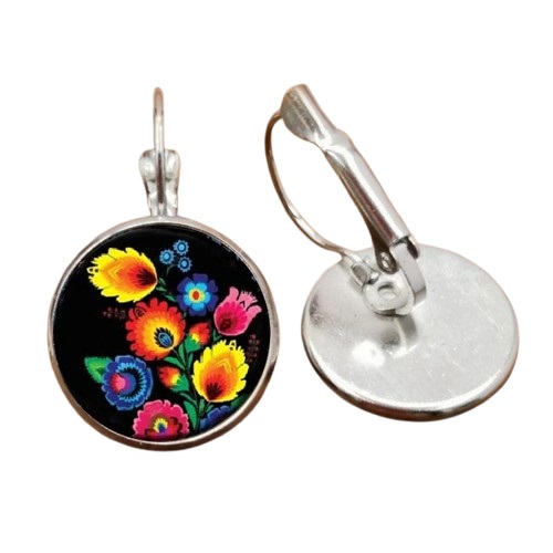 Visiace náušnice s ľudovým motívom - kytica na čiernom pozadí II